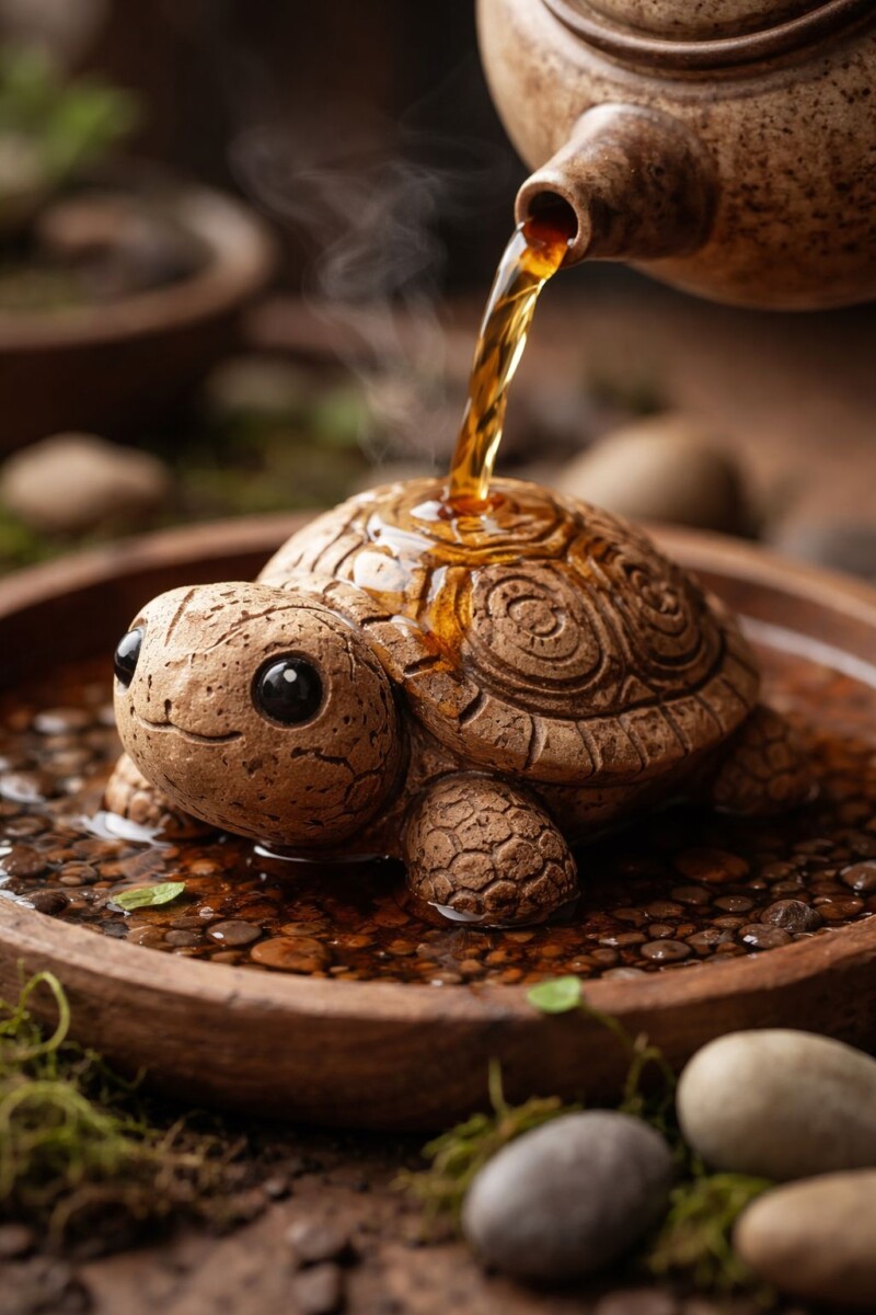 Las mascotas del té son figuras de arcilla que se usan para presentar o decorar la mesa del té, y que a veces se «bañan» o se imbuyen con té antes de servir. En la cultura china, esto se relaciona más con tradiciones de ceremonial, presentación y artes decorativas.